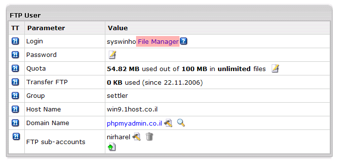 3. לחיצה על File Manager לפתיחת חלון הגדרות אבטחה ו-FTP.