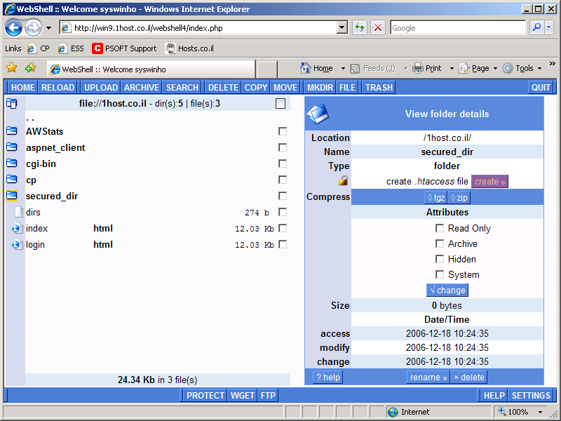 5. כעת בחלונית שנפתחה לימינכם (View Folder details) יש לחצן create ליד create .htaccess file, ליחצו עליו.