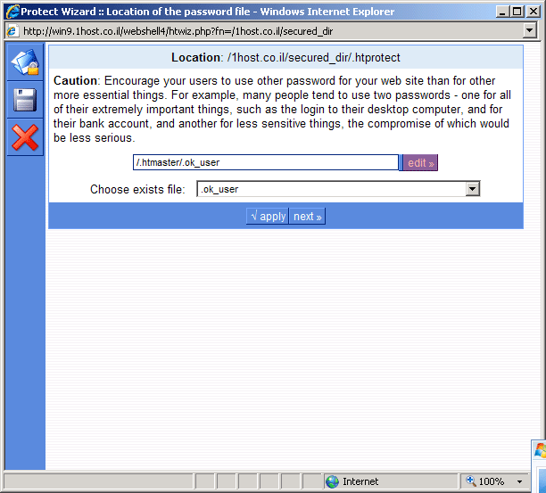 בכדי להגדיר הרשאות שם משתמש וסיסמה על מנת להגביל גישה לספריה ספציפית יש לעקוב אחר ההוראות הבאות: