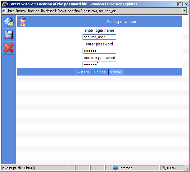 8. כעת יש לרשום את שם המשתמש והסיסמה שברצונכם להוסיף וליחצו על save.
