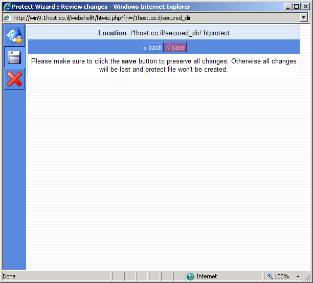 10. אנא ליחצו על אייקון הדיסק בצד שמאל (שמירה) על מנת לשמור את ההגדרות שביצעתם וליחצו על save