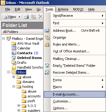 - מתוך תפריט "Tools" יש לבחור בפריט "E-mail Accounts".
