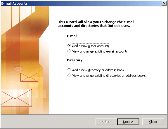 הגדרת דואר אלקטרוני ב-outlook 2003