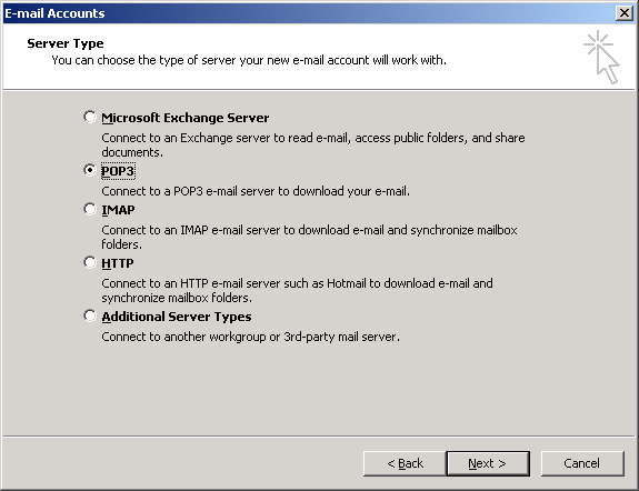 יש לבחור את pop3 מהרשימה וללחוץ על next