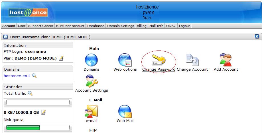 כיצד אשנה סיסמא לממשק הניהול ול-FTP