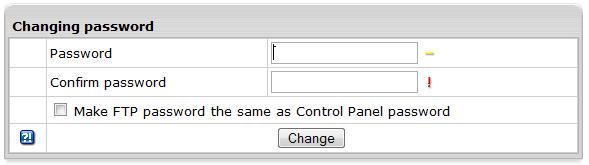 במידה ואתה רוצה לשנות גם את סיסמת ה-FTP יש לסמן את שורת הטקסט( make FTP password the same as Control Panel password ) ב-V וללחוץ על שינוי. .