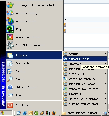 יש לבחור באפשרות "Programs" ולבחור בתוכנה " Outlook Express".