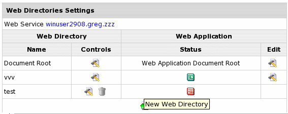 3. ליד Web Directories Settings ליחצו על Add על מנת להוסיף ספריה וירטואלית חדשה.