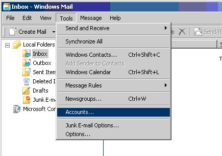- מתוך תפריט "Tools" יש לבחור בפריט "Accounts".