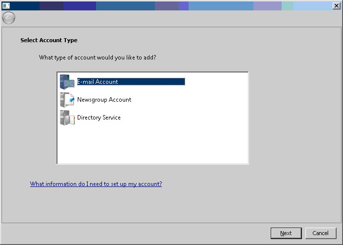 יש לבחור את E-Mail account מהרשימה וללחוץ על next