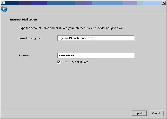 7. הזינו את שם המשתמש והסיסמא ל תיבת הדואר אותה אתם מעוניינים להוסיף: