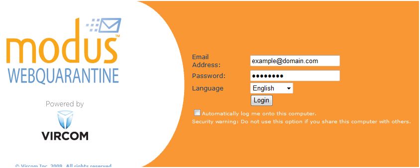 שירות אנטיספאם של חברת Vircom מבצע סריקה לכל תעבורת מיילים הנכנסת לדומיין.