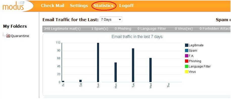 בכדי לצפות בסטאטיסטיקות של תעבורת מיילים הנכנסת , יש להכנס לקישור Statistics דרך תפריט הראשי