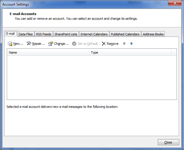 הגדרת תיבת דואר ב-oultlook 2007