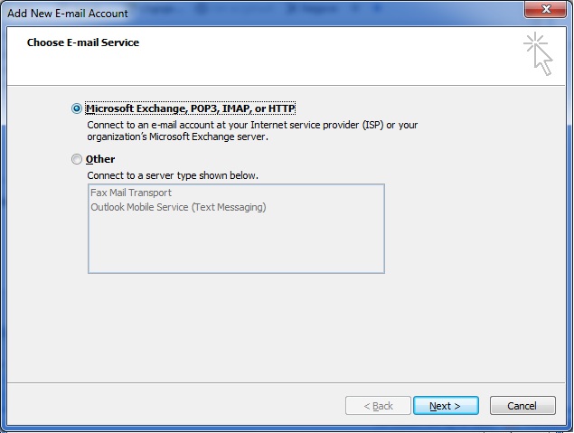 כעת אנו מתבקשים לבחור את סוג החשבון אותו נגדיר ב outlook. השאירו את תיבת הסימון הראשונה מסומנת ולחצו Next.