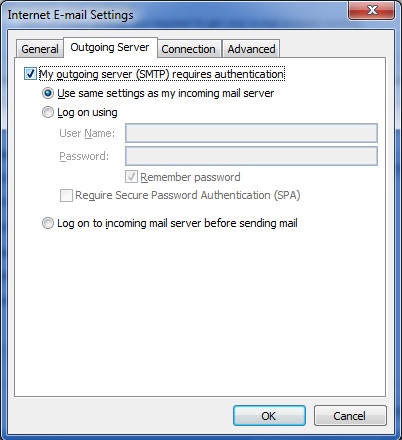 יש ללחוץ על הלשונית Outgoing Server ולסמן את My outgoing server (SMTP) requires authentication.
